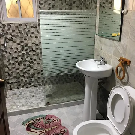 Die Casa De Vacaciones Y Habitaciones Amuebladas verfügt über ein Badezimmer mit einem Bidet, einer begehbaren Dusche und einer getrennten Toilette. Badelaken sorgen für zusätzlichen Komfort.